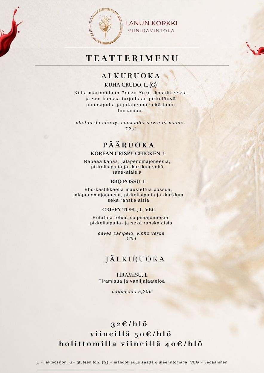 Muista tilata teatterimenu pöytävarauksen yhteydessä!