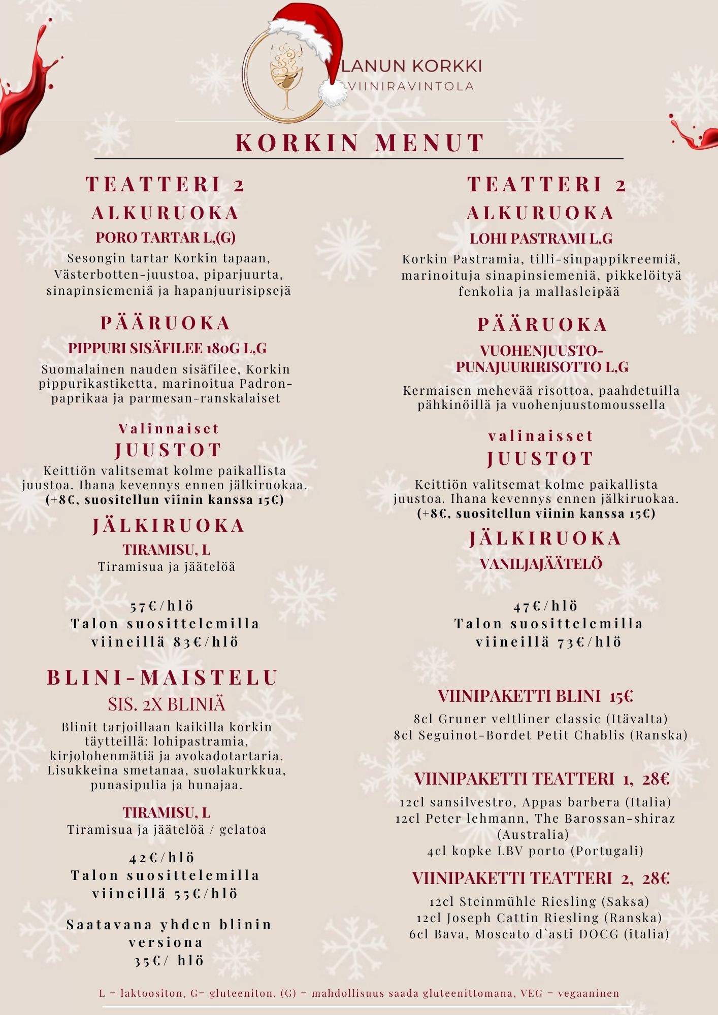 Muista tilata teatterimenu pöytävarauksen yhteydessä!